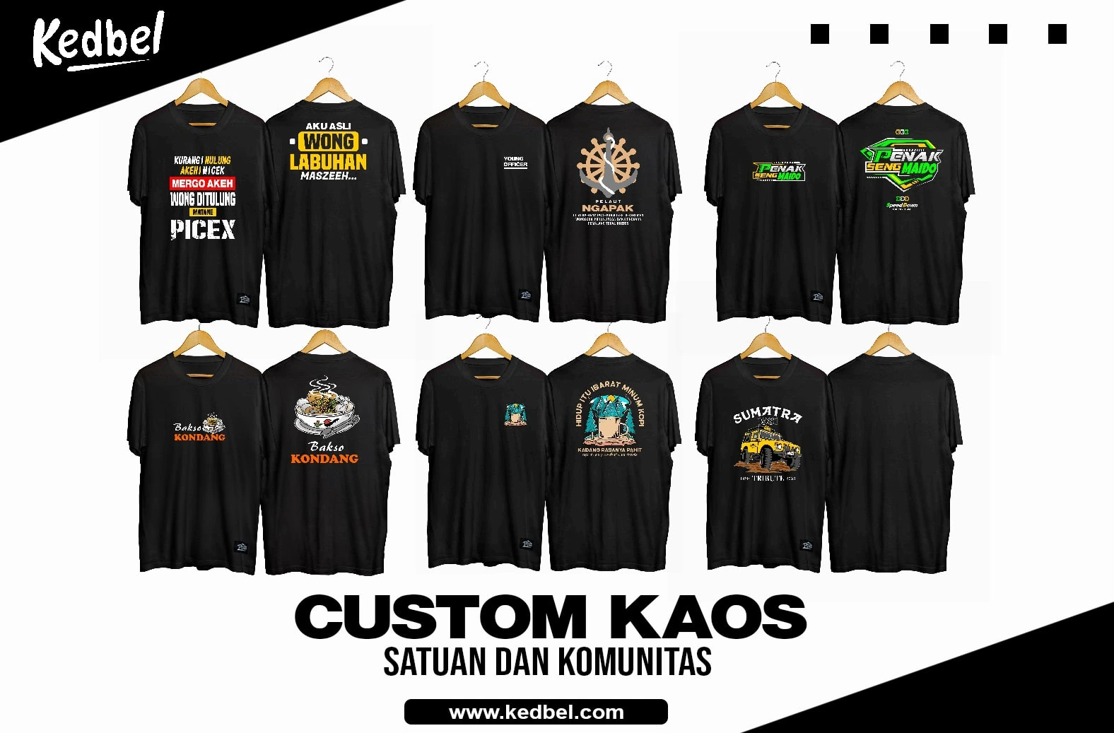 Melayani pembuatan kaos sablon satuan dan masal untuk berbagai komunitas, perusahaan, event, instansi, maupun individu. Kaos Custom desain suka-suka dengan harga bersahabat dan kualitas premium.